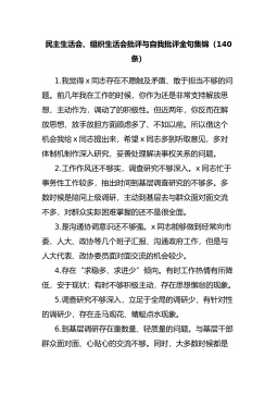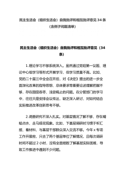 (34条)民主生活会(组织生活会)自我批评和相互批评意见(含例子问题清单)
