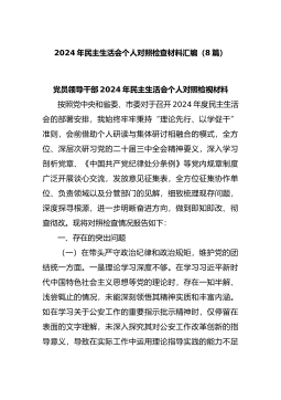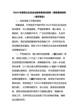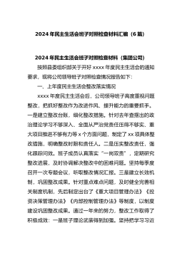 乡镇领导干部2024年度专题民主生活会、组织生活会对照检查材料(四个带头+反面典型案例剖析)根据市委《关于召开2024年度民主生活会的通知》有关要求和镇党委相关工作部署,我紧紧围绕本次民主生活会主题,结合自身实际情况,认真对照“四个带头”,全面深入查摆了自身存在的突出问题,认真分析了问题产生的原因,逐项明确了下一步整改措施。按照会议安排,现将个人对照检查情况汇报如下。一