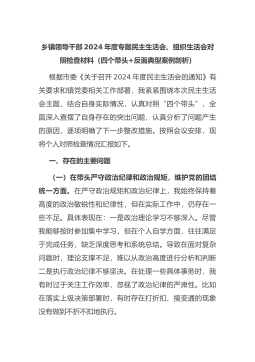 乡镇领导干部2024年度专题民主生活会、组织生活会对照检查材料(四个带头+反面典型案例剖析)