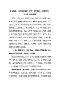 区委常委、组织部部长研讨发言:凝心聚力、实干担当,作出更大组织贡献
