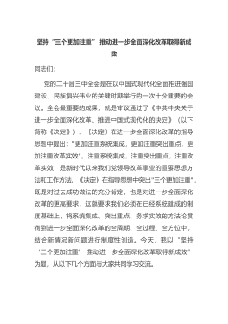 区委常委、组织部部长研讨发言:凝心聚力、实干担当,作出更大组织贡献党的二十届三中全会是在以中国式现代化全面推进强国建设、民族复兴伟业关键时期召开的一次具有划时代意义的会议,彰显了进一步全面深化改革的使命之宏伟、时期之关键、任务之艰巨、关系之重大,开启了新时代全面深化改革的实践续篇、新征程推进中国式现代化的时代新篇全区组织系统将持续把深入学习贯彻党的二十届三中全会精神作为当前和今后一