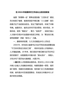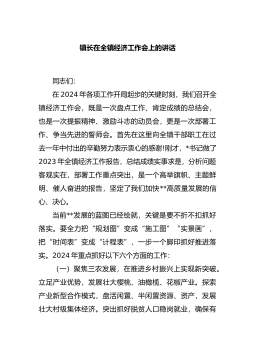 在X镇2024年高质量发展暨镇村负责干部大会上的讲话同志们:今天这次会议的主要任务是:坚持以习近平新时代中国特色社会主义思想为指导,深入学习贯彻党的XX大精神,全面落实省委十二届五次全会、市委八届六次全会和区委六届五次全会及高质量发展暨招商引资大会会议精神,总结表彰2023年工作成绩,安排部署2024年工作任务。这既是一次凝心聚力、鼓舞干劲的表彰大会,又是一次解放思想、再擂战鼓的动员...