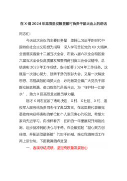 在X镇2024年高质量发展暨镇村负责干部大会上的讲话