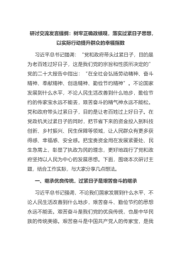 研讨交流发言提纲:树牢正确政绩观,落实过紧日子思想,以实际行动提升群众的幸福指数