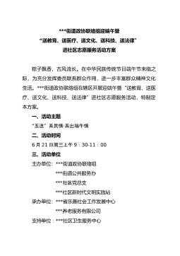 街道政协联络组迎端午暨“送教育、送医疗、送文化、送科技、送法律”进社区志愿服务活动方案