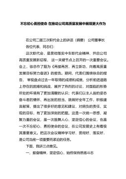 不忘初心勇担使命在推动公司高质量发展中展现更大作为在公司二届三次职代会上的讲话(摘要)公司董事长各位代表、同志们:这次职代会,是贯彻落实中车职代会精神、开启公司高质量发展新征程,这一关键节点上召开的一次重要会议。会上,徐总作了题为《再接再厉,再立新功,向着高质量发展目标努力奋进》的报告。期间,代表们围绕徐总的报告,审视盘点过去一年取得的成绩和成就,分析前进道路上存在的困难和挑战,展开了热烈...