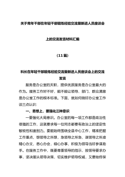 (10篇)关于青年干部在年轻干部锻炼经验交流暨新进人员座谈会上的交流发言材料汇编
