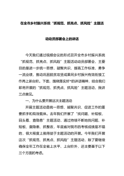 在全市乡村振兴系统“抓规范、抓亮点、抓风险”主题活动动员部署会上的讲话
