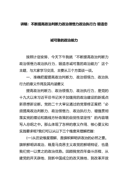 讲稿:不断提高政治判断力政治领悟力政治执行力 锻造忠诚可靠的政治能力