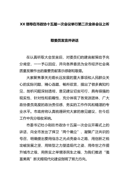 XX领导在市政协十五届一次会议举行第二次全体会议上听取委员发言并讲话