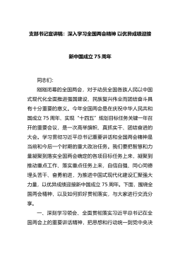 支部书记宣讲稿:深入学习全国两会精神 以优异成绩迎接新中国成立75周年