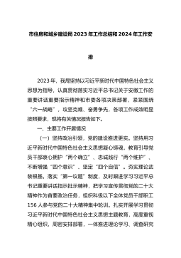 市住房和城乡建设局2023年工作总结和2024年工作安排
