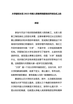 大学副校长在2023年新入职教师岗前培训开班仪式上的讲话
