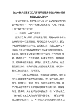 纪委书记在群众身边不正之风和腐败问题集中整治第四次调度会上的讲话同志们:今天,我们召开全县群众身边不正之风和腐败问题集中整治第四次调度会,主要任务是认真学习贯彻习近平总书记在党的二十届三中全会上所作的工作报告和重要讲话精神,跟进学习贯彻中央纪委国家监委集中整治组《通知》《六点考虑》以及省纪委监委《通知》和全市群众身边不正之风和腐败问题集中整治第四次调度会议精神,听取前期集中整治工