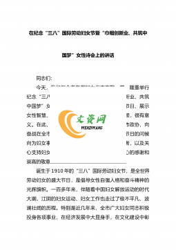 在纪念“三八”国际劳动妇女节暨“巾帼创新业、共筑中国梦”女性诗会上的讲话