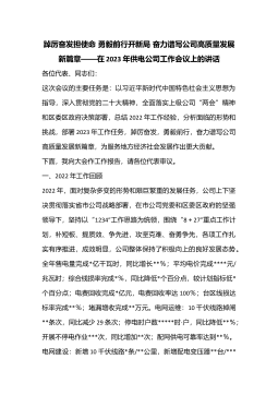 踔厉奋发担使命 勇毅前行开新局 奋力谱写公司高质量发展新篇章——在2023年供电公司工作会议上的讲话