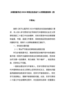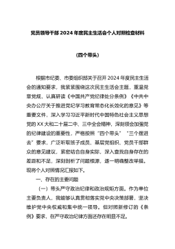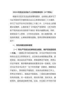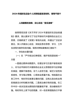 2024年组织生活会个人对照检查发言材料、领导干部个人问题整改清单、谈心谈话“意见清单”