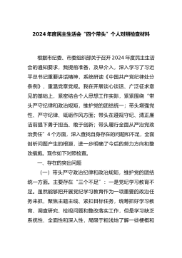 2024年组织生活会个人对照检查发言材料、领导干部个人问题整改清单、谈心谈话“意见清单”按照局党支部《关于开好2024年度组织生活会的通知》要求,我认真学习了习近平新时代中国特色社会主义思想,仔细研读了《党章》等党内法规,并通过广泛征求意见,深入开展谈心谈话,深刻反思在思想、学习、工作生活等方面存在的问题。现将对照检查情况汇报如下:一、存在的主要问题(一)在“严守政治纪律规矩