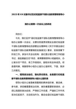 2023年XX纪委书记在纪检监察干部队伍教育整顿领导小组办公室第一次会议上的讲话