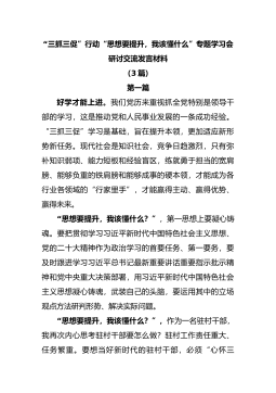 (3篇)“三抓三促”行动“思想要提升,我该懂什么”专题学习会研讨交流发言材料
