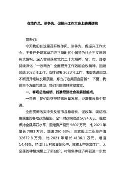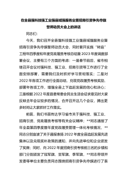 在全县强科技强工业强县域强服务业暨招商引资争先夺旗誓师动员大会上的讲话同志们:今天,我们召开全县强科技强工业强县域强服务业暨招商引资争先夺旗誓师动员大会,同时套开实施“转追”工程年四季度和年度党政履责考核总结暨2023年度调度部署会议,主要有三个方面的考虑:一是春节前后,省市相继召开会议对强科技、强工业、招商引资等工作进行了全面安排部署,需要我们及时抓好学习贯彻落实;二是对2022年各项工作...