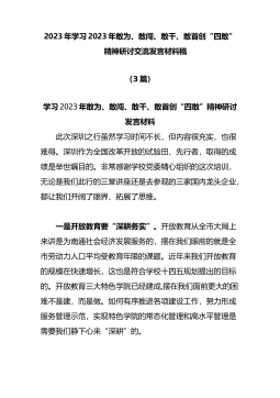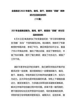 (13篇)全面推进2023年敢为、敢闯、敢干、敢首创“四敢”精神研讨交流发言材料