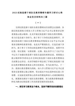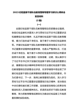 (3篇)2023纪检监察干部队伍教育整顿专题学习研讨心得体会发言材料