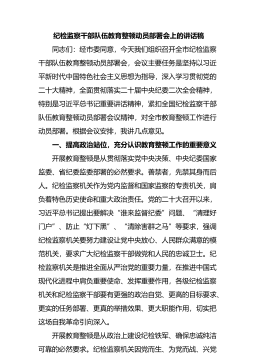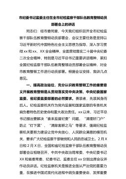 市纪委书记监委主任在全市纪检监察干部队伍教育整顿动员部署会上的讲话同志们:经市委同意,今天我们组织召开全市纪检监察干部队伍教育整顿动员部署会,会议主要任务是坚持以习近平新时代中国特色社会主义思想为指导,深入学习贯彻xx和xx、XX全会精神,全面贯彻落实二十届中央纪委二次全会精神,特别是习近平总书记重要讲话精神,紧扣全国纪检监察干部队伍教育整顿动员部署会议精神,对全市教育...