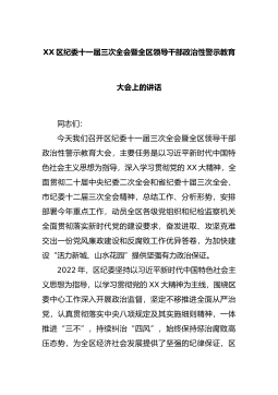 XX市纪委书记在全市纪检监察干部队伍教育整顿动员大会上的讲话同志们:这次会议的主要任务是,以习近平新时代中国特色社会主义思想为指导,深入学习贯彻XX精神和省委、市委全会精神,全面贯彻落实二十届中央纪委二次全会精神,对全市纪检监察干部队伍教育整顿进行动员部署,着力锻造忠诚干净担当、敢于善于斗争、堪当新时代新征程新重任的高素质纪检监察铁军,为全面推进XX社会主义现代化建设提供坚强保障。市委书...