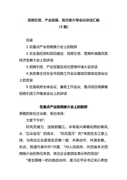 (5篇)招商引资、产业发展、地方推介等会议讲话汇编