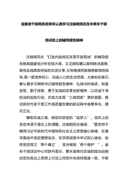 省委老干部局系统青年认真学习沈晓明同志在中青年干部培训班上的辅导报告精神