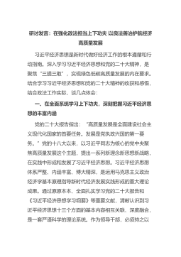 研讨发言:在强化政法担当上下功夫 以良法善治护航经济高质量发展
