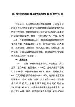 XX市投资促进局2023年工作总结暨2024年工作计划