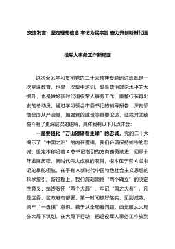 交流发言:坚定理想信念 牢记为民宗旨 奋力开创新时代退役军人事务工作新局面