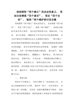 深刻领悟“两个确立”的决定性意义, 更加自觉增强“四个意识”、 坚定“四个自信”、 做到“两个维护研讨发言稿