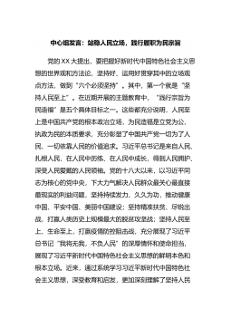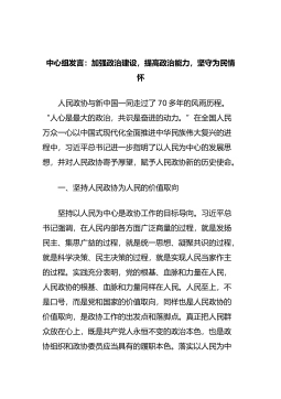 在市政协理论学习中心组(扩大)会议暨“践行宗旨为民造福”专题研讨会上的发言习近平总书记在主题教育工作会议上深刻阐述了开展这次主题教育要达到的五个方面目标,其中之一是“践行宗旨为民造福”,明确要求广大党员、干部“牢固树立以人民为中心的发展思想,坚持一切为了人民、一切依靠人民,自觉问计于民、问需于民,始终同人民同呼吸、共命运、心连心”。这一以贯之的部署,彰显了我们党坚持人民至上的根...