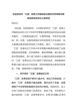 在全区农村“三变”改革工作推进会议暨农村冬季集中教育活动动员会议上的讲话