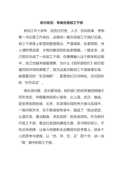 组织部长在县委理论学习中心组“学思想见行动促振兴”专题研讨会上的发言全国组织工作会议是在全面建设社会主义现代化国家开局起步关键时刻召开的一次重要会议。会前,习近平总书记对党的建设和组织工作作出重要指示。9月15至16日,全省组织工作会议召开,就全面贯彻新时代党的建设总要求和新时代党的组织路线,对当前和今后一个时期组织工作作出全面部署。作为基层组织部部长,我将认真落实...