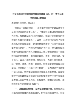 在全省县域经济高质量发展大会暨县(市、区)委书记工作交流会上的发言