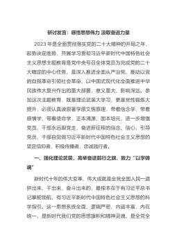 以学铸魂、以学增智”学习感悟——在县委理论学习中心组学习上的交流发言思想建党、理论强党是我们党的鲜明特色和宝贵经验。习近平总书记在主题教育工作会议上强调,“要以这次主题教育为契机,加强党的创新理论武装,不断提高全党马克思主义水平,不断提高党的执政能力和领导水平”。这一重要论述从党和国家事业发展全局的战略高度,阐明了加强理论武装的重要意义,为全党开展主题教育指明了前进方向、提供了根本...