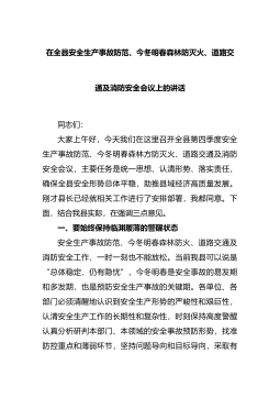 在全县安全生产事故防范、今冬明春森林防灭火、道路交通及消防安全会议上的讲话