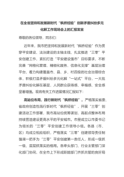 在全省坚持和发展新时代“枫桥经验”创新矛盾纠纷多元化解工作现场会上的汇报发言