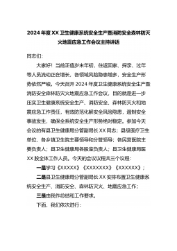 2024年度XX卫生健康系统安全生产暨消防安全森林防灭火地震应急工作会议主持讲话