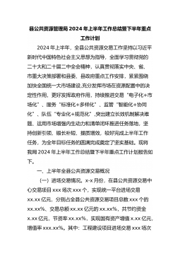县公共资源管理局2024年上半年工作总结暨下半年重点工作计划