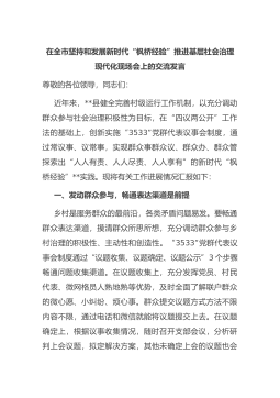 在全市坚持和发展新时代“枫桥经验”推进基层社会治理现代化现场会上的交流发言
