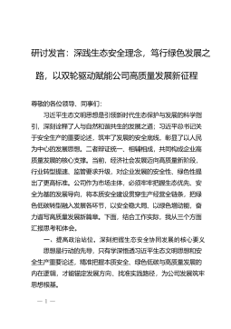 研讨发言:深践生态安全理念,笃行绿色发展之路,以双轮驱动赋能公司高质量发展新征程
