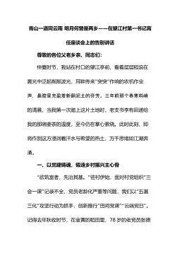 ——青山一道同云雨明月何曾是两乡在望江村第一书记离任座谈会上的告别讲话尊敬的各位父老乡亲、同志们:仲夏时节,我站在村口的望江亭前,看着层层稻浪在””晨光中泛起粼粼波光,耳畔传来突突作响的农机作业声,鼻腔里充盈着新翻泥土的芬芳。三年前那个春寒料峭的清晨,当我第一次踏上这片土地时,老支书李有田递给我的那碗姜茶的温度,至今仍在掌心萦绕。此时此刻,即将作别这方浸润着汗水与希望的