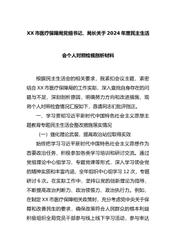 XX市医疗保障局党组书记、局长关于2024年度民主生活会个人对照检视剖析材料
