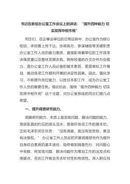 书记在参加办公室工作会议上的讲话:“提升四种能力 切实发挥中枢作用”